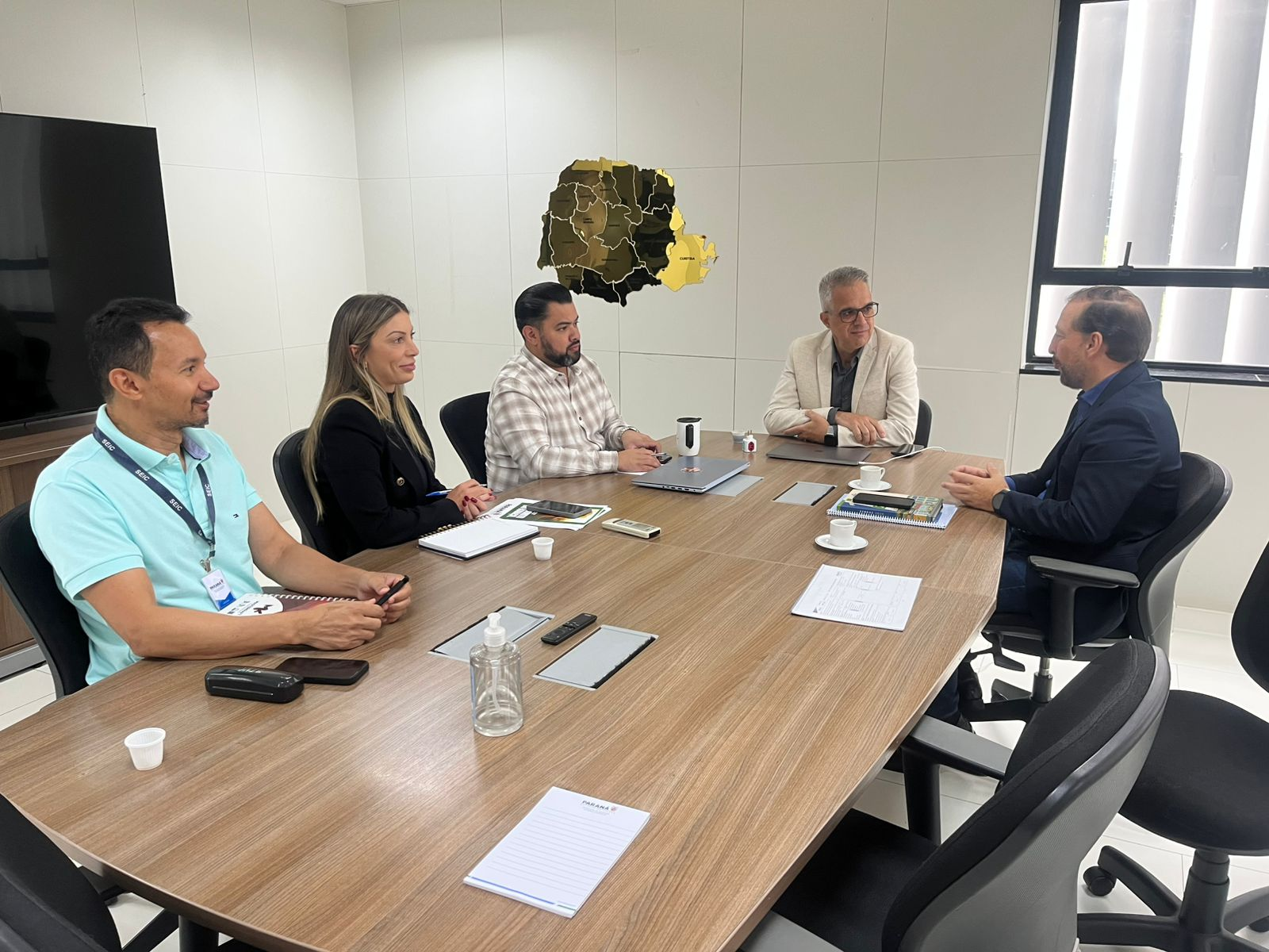 Durante o encontro, Luiz Marcelo Padilha apresentou uma visão geral do FOPEME, destacando o papel estratégico dos Comitês Territoriais e o potencial de integração das ações da SEIC com as iniciativas já desenvolvidas nos territórios. Também foi ressaltado o histórico de parceria e cooperação entre o SEBRAE e o Governo do Estado na execução de projetos voltados à melhoria do ambiente de negócios para as micro e pequenas empresas paranaenses.